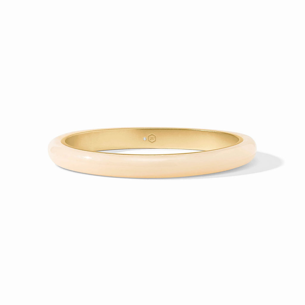 An elegantly rounded bangle of polished translucent tortoiseshell lined with smooth gold.